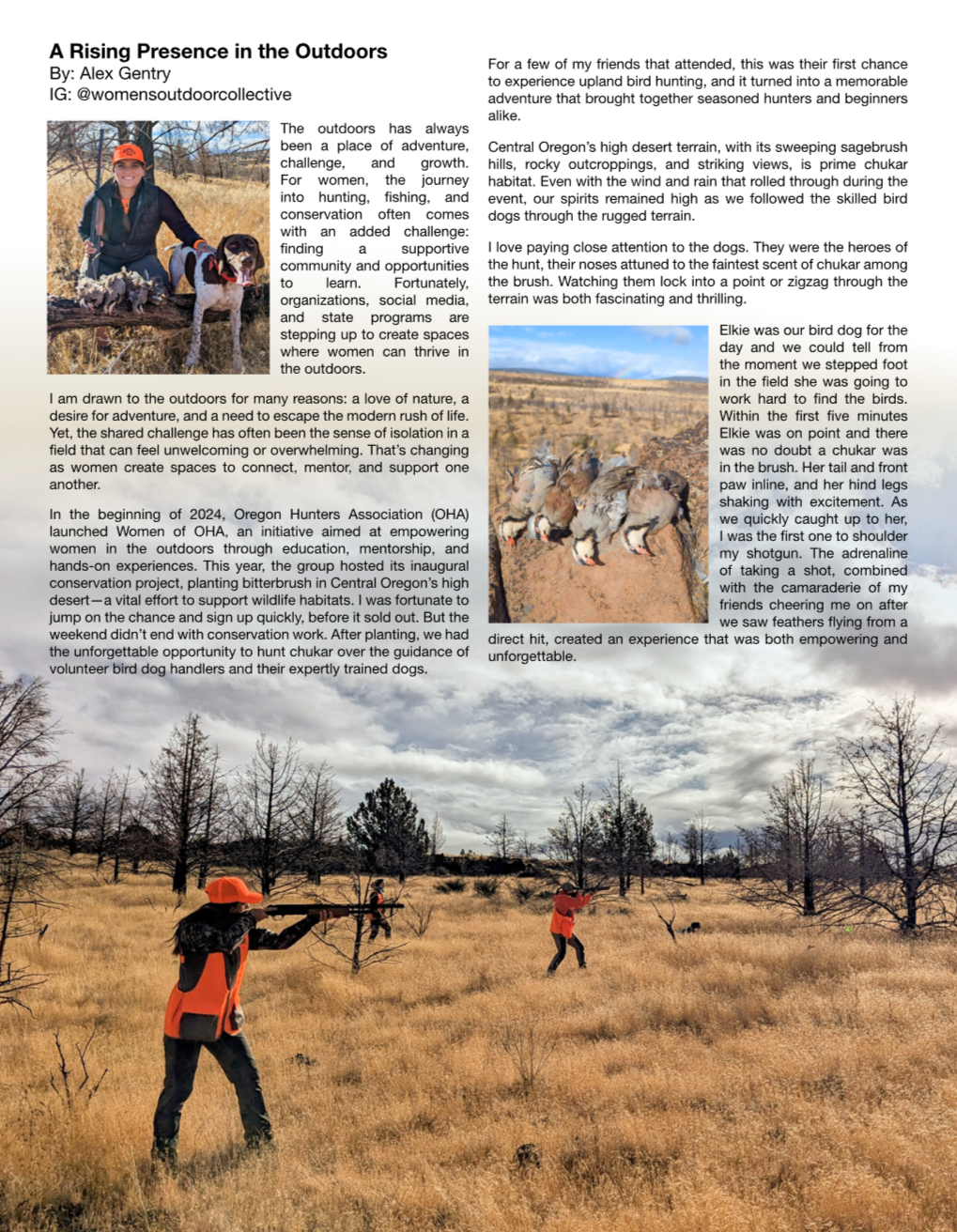In “A Rising Presence in the Outdoors,” Alex Gentry shares how mentorship, community, and hands-on experiences are helping more women step confidently into hunting, conservation, and outdoor recreation. Through stories from events like women’s chukar hunts and habitat projects, the article highlights how supportive communities and organizations are creating opportunities for women to learn new skills, connect with mentors, and build lasting relationships in the outdoors. It also reflects the growing movement empowering women to explore, participate in conservation, and shape the future of outdoor traditions.